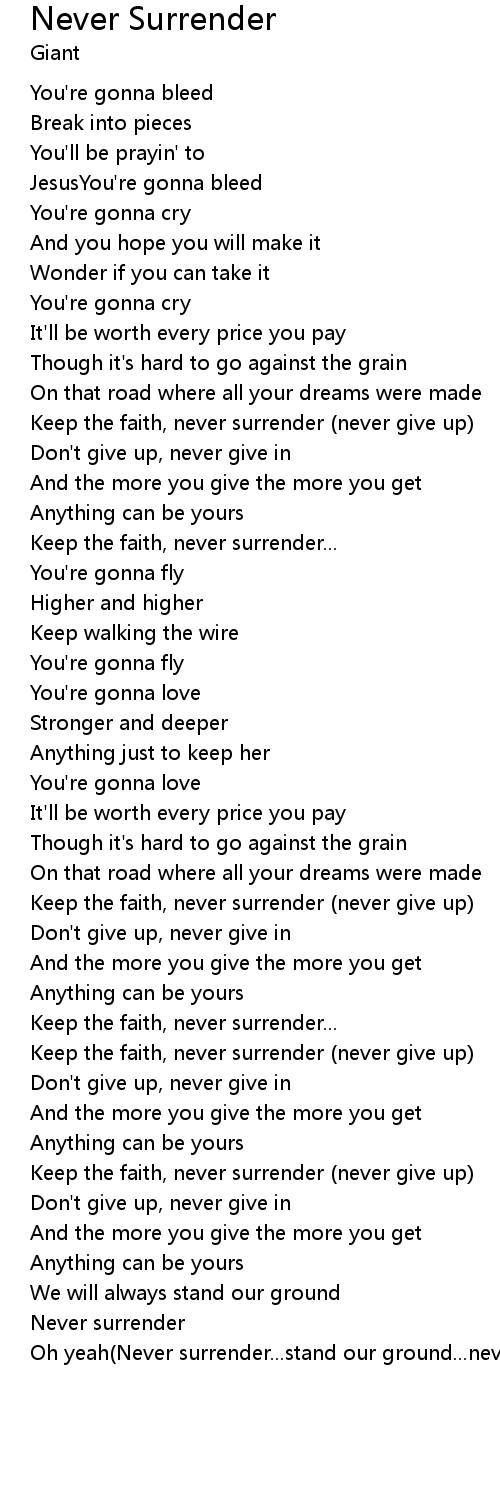 Oh yeah(Never surrender...stand our ground...never surrender) |