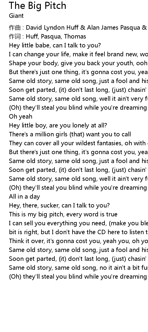 | This is my big pitch, every word is true | |