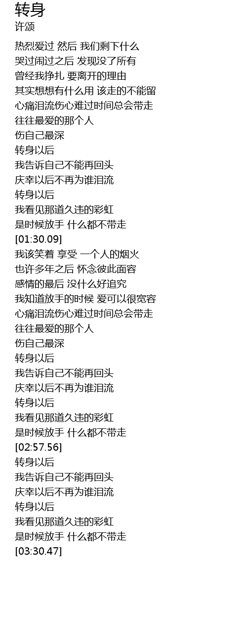 | [02:43.91] | zhuǎn shēn yǐ hòu |