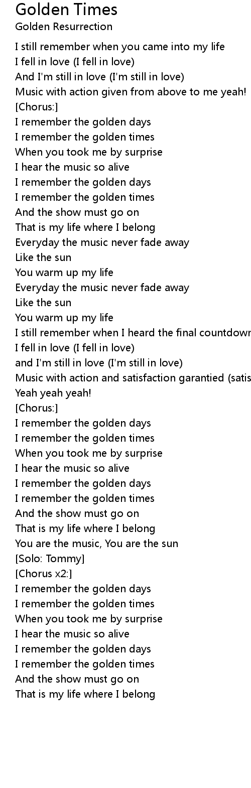 I remember the golden times |