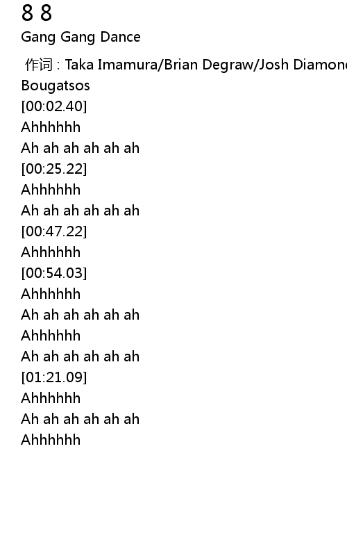 | [00:00.00] | zuò cí : Taka Imamura Brian Degraw Josh Diamond Jesse Lee Lizzie Bougatsos |