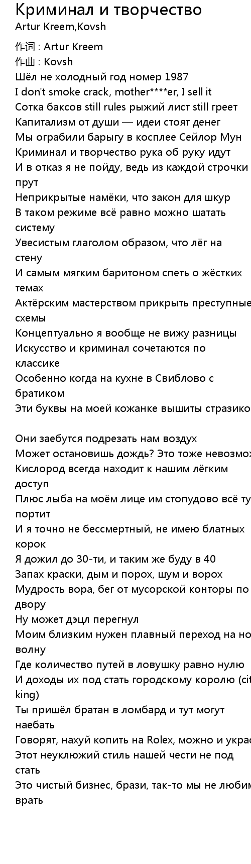 Криминал и творчество  Lyrics