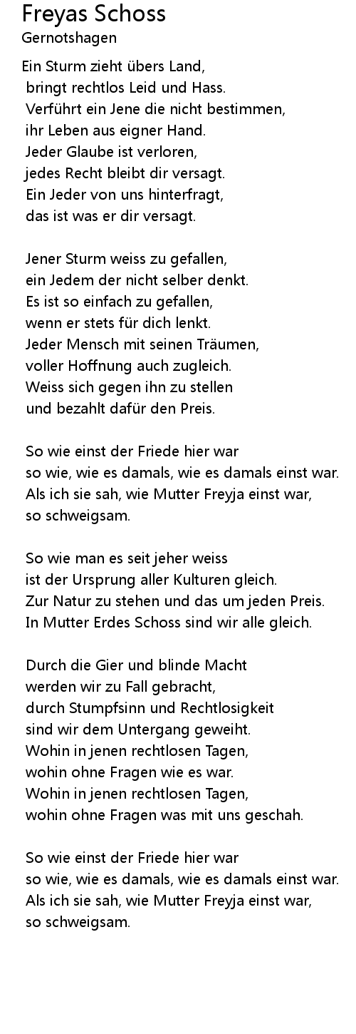 | Als ich sie sah, wie Mutter Freyja einst war, | |