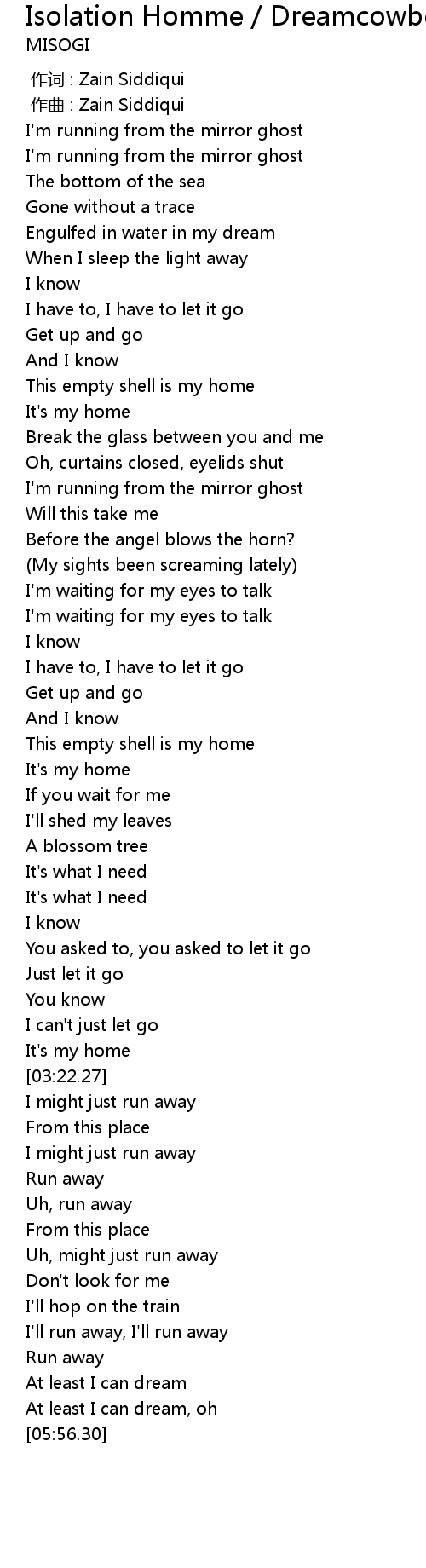 | [01:44.52] | I' m running from the mirror ghost |