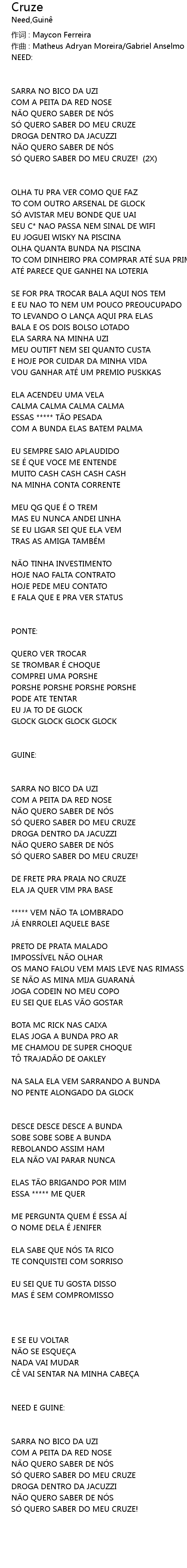 | SÓ QUERO SABER DO MEU CRUZE! (2X) | |