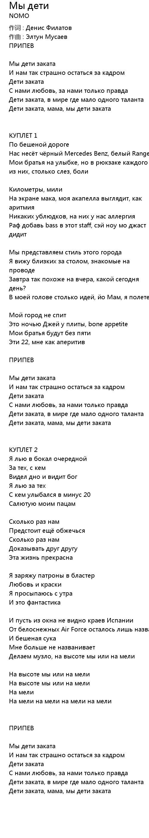 作词 : Денис Филатов |