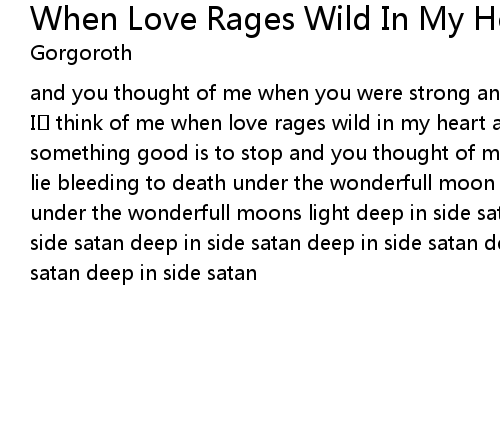 | I think of me when love rages wild in my heart and you thought of me when something good is to stop and you thought of me when noone is to sick i do not lie bleeding to death under the wonderfull moon i do not lie bleeding to death under the wonderfull moons light deep in side satan deep in side satan deep in side satan deep in side satan deep in side satan deep in side satan deep in side satan deep in side satan |