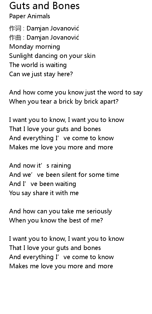 | That I love your guts and bones | |