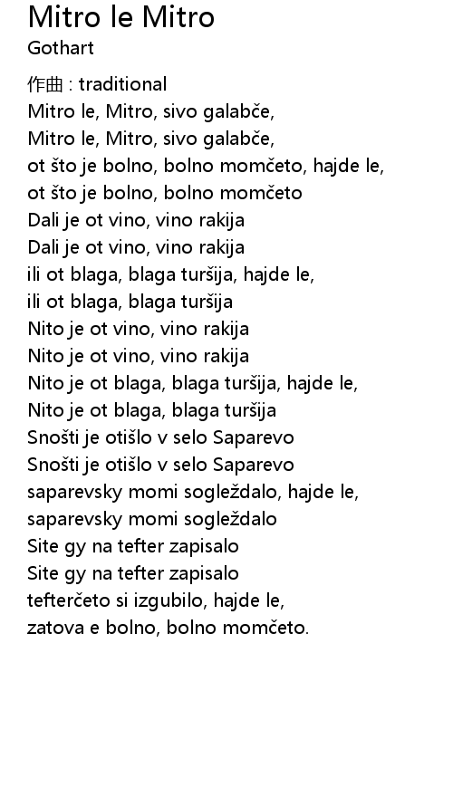 | Nito je ot blaga, blaga tur ija, hajde le, | |