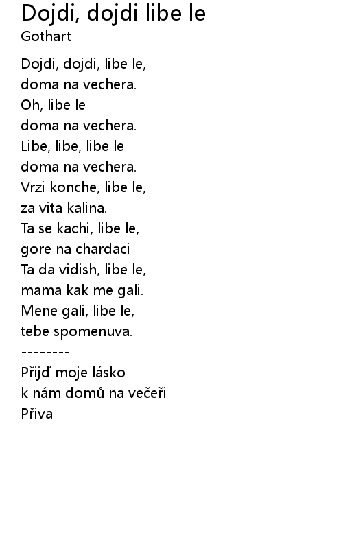Dojdi, dojdi libe le Lyrics