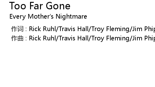 | [00:00.000] | 作曲 : Rick Ruhl/Travis Hall/Troy Fleming/Jim Phipps/Vinnie Rich |