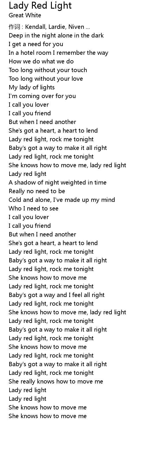 | Lady red light, rock me tonight | |