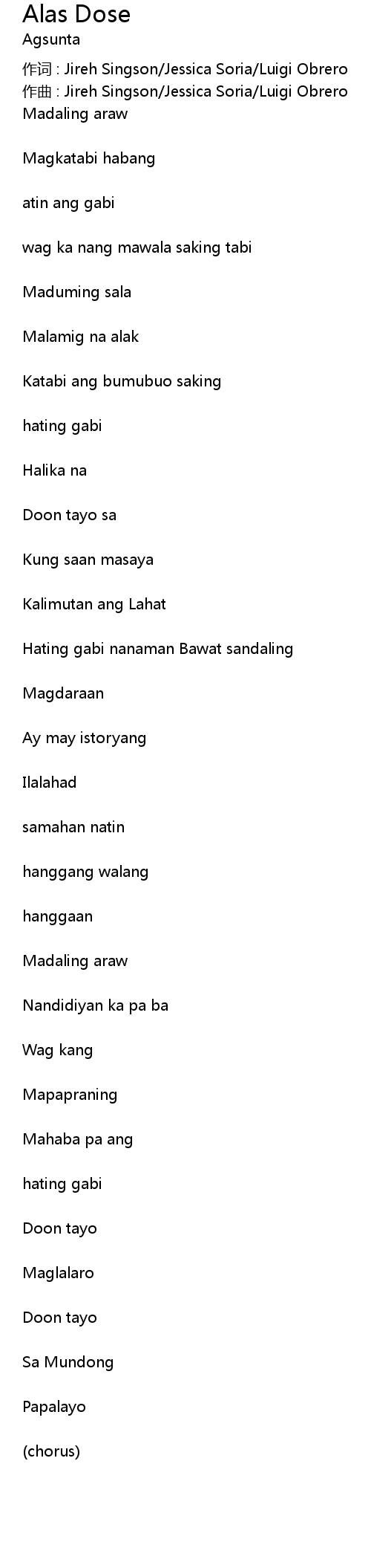 | 作词 : Jireh Singson/Jessica Soria/Luigi Obrero | |