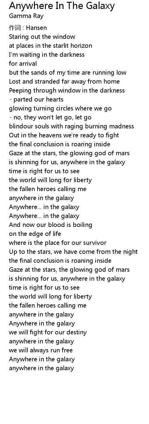| Song | Anywhere In The Galaxy |