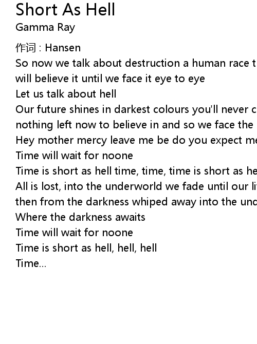 | Time is short as hell, hell, hell | |