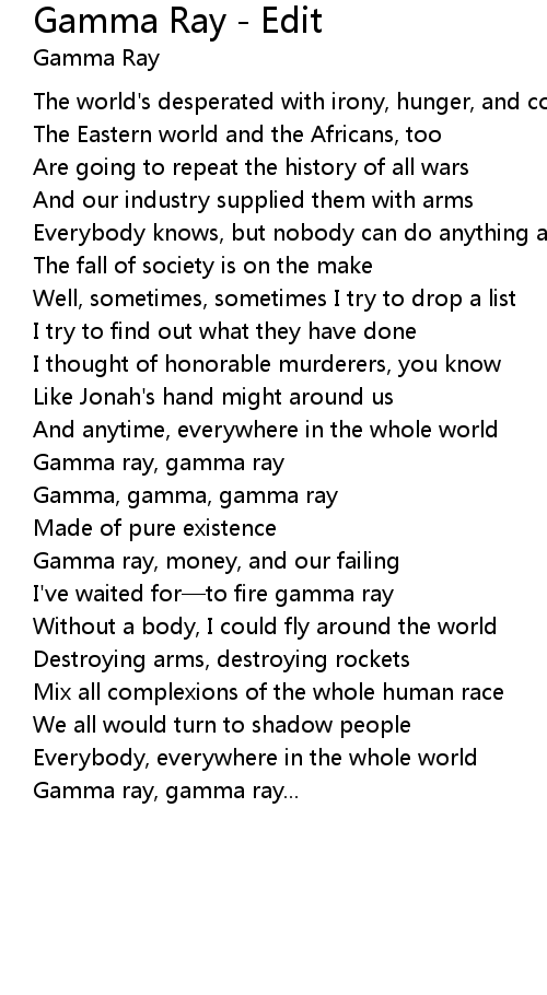 | Song | Gamma Ray - Edit |