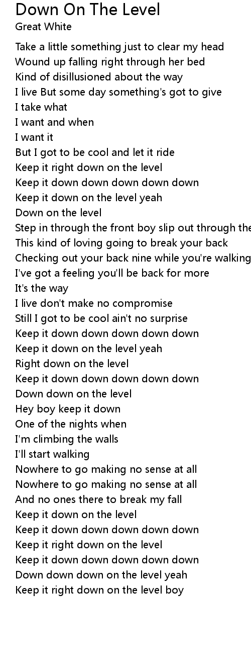 Down down on the level |