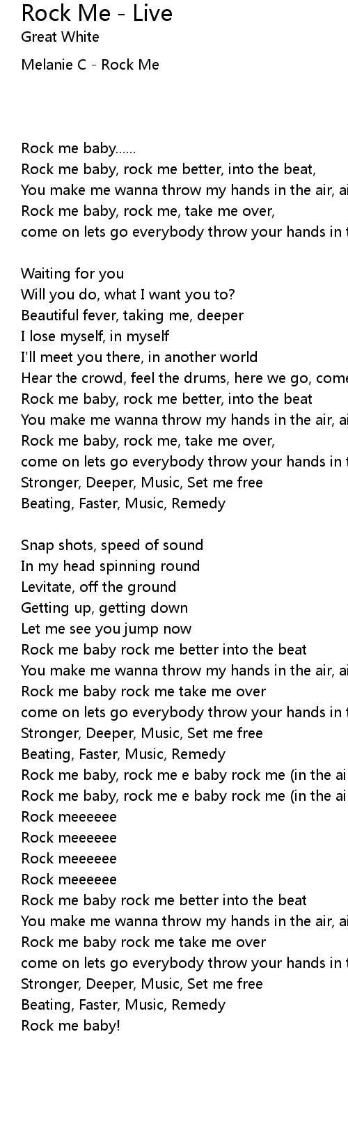 Rock me baby rock me better into the beat |