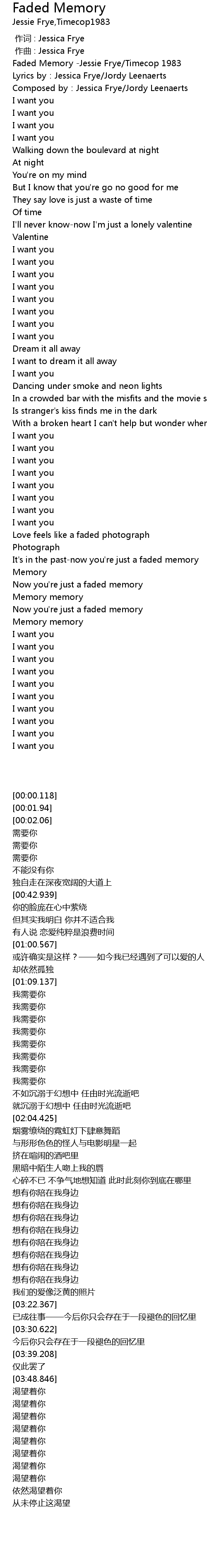 | [00:00.118] | Faded Memory Jessie Frye Timecop 1983 |