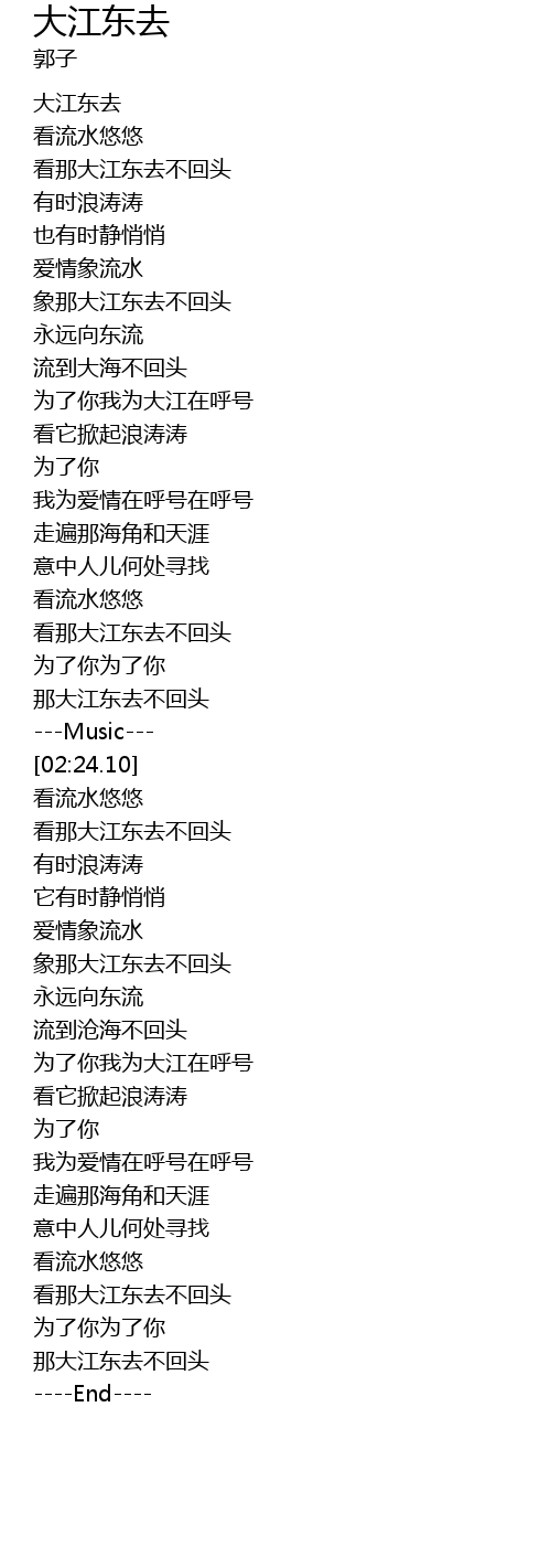| [02:12.24] | nà dà jiāng dōng qù bù huí tóu |