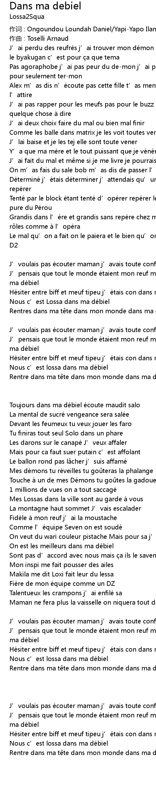 | 作词 : Ongoundou Loundah Daniel/Yapi-Yapo Ilan | |