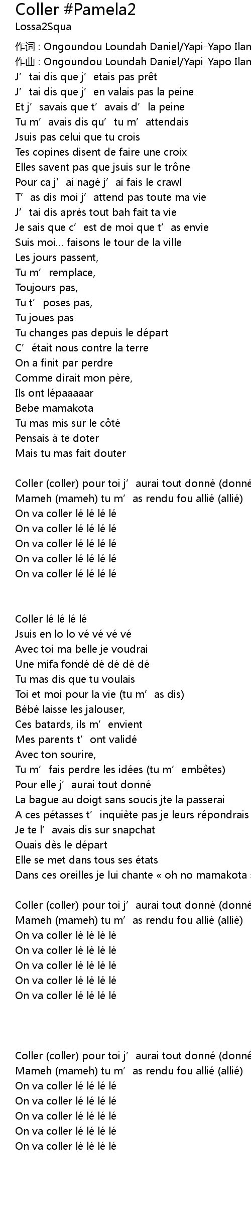 | Coller (coller) pour toi j’aurai tout donné (donné) | |