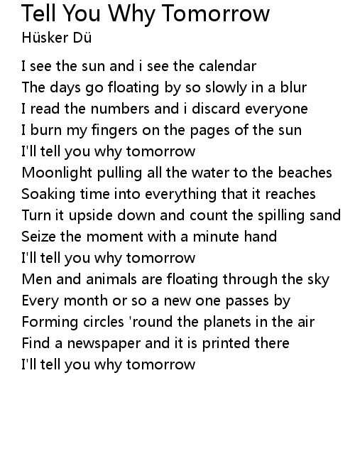 I'll tell you why tomorrow |