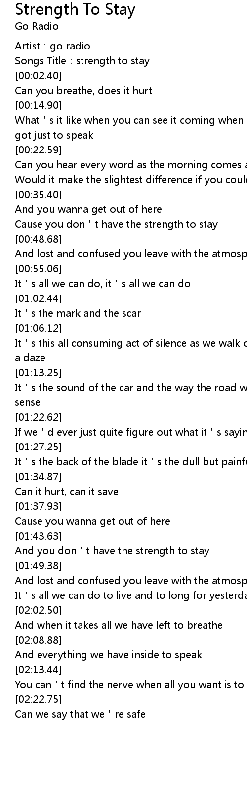 | [00:01.59] | Songs Title: strength to stay |