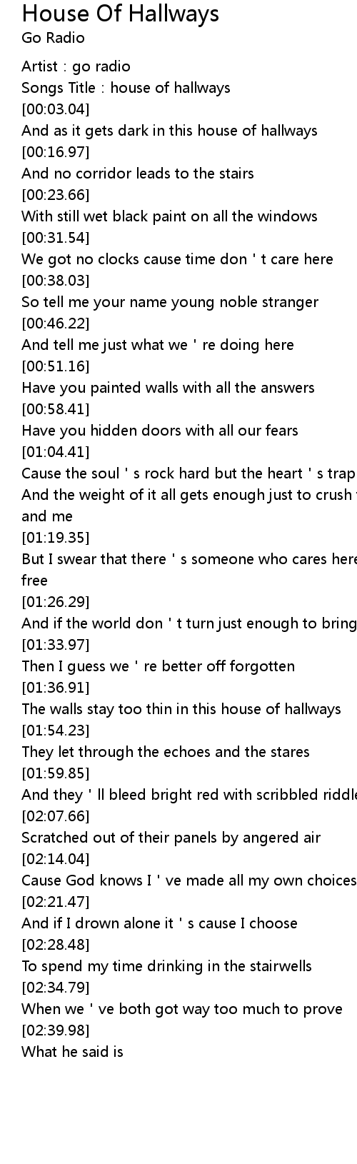 | [00:01.54] | Songs Title: house of hallways |