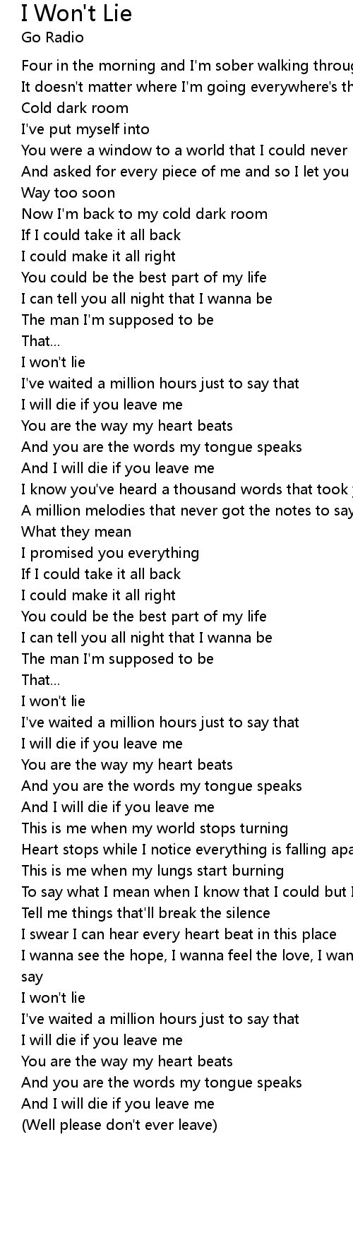 I won't lie |
