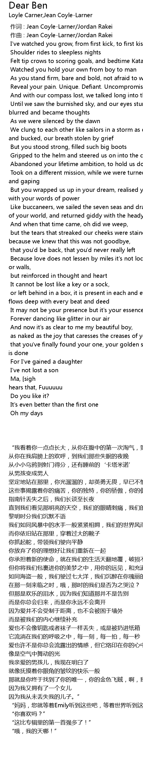| Song | Dear Ben |