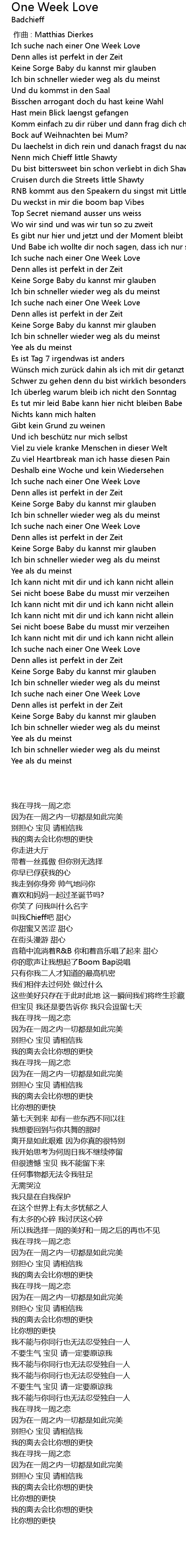 | [03:22.00] | Ich suche nach einer One Week Love |