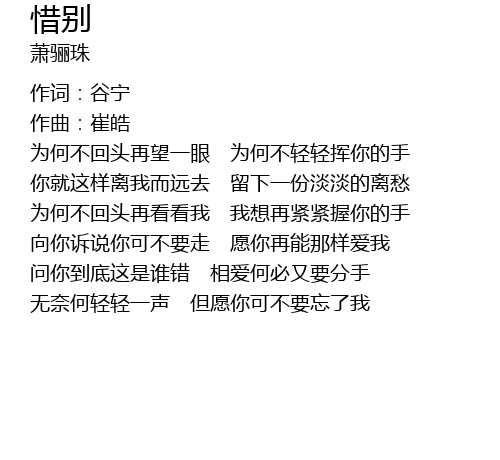 | 为何不回头再望一眼 为何不轻轻挥你的手 | |