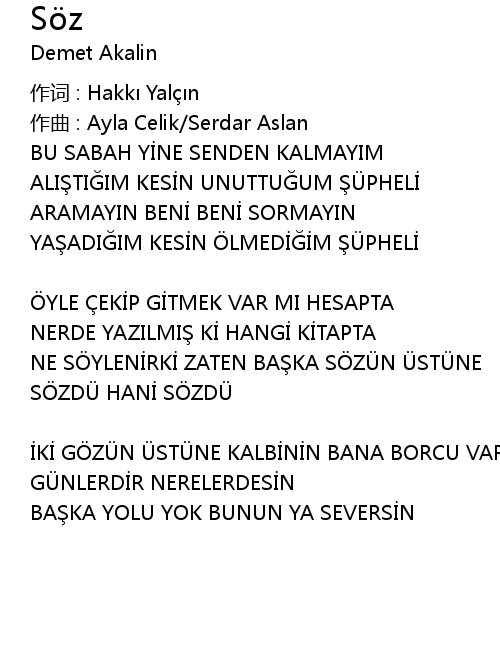 | 作词 : Hakkı Yalçın | |
