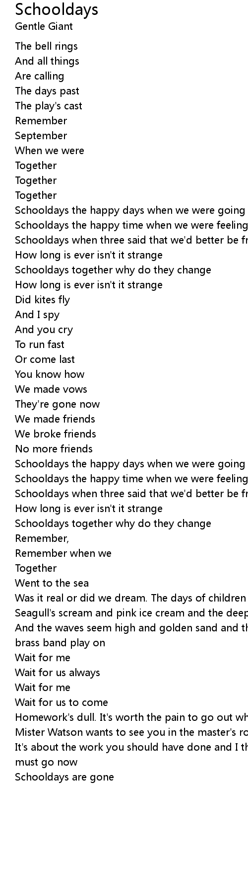 Schooldays when three said that we'd better be friends forever |