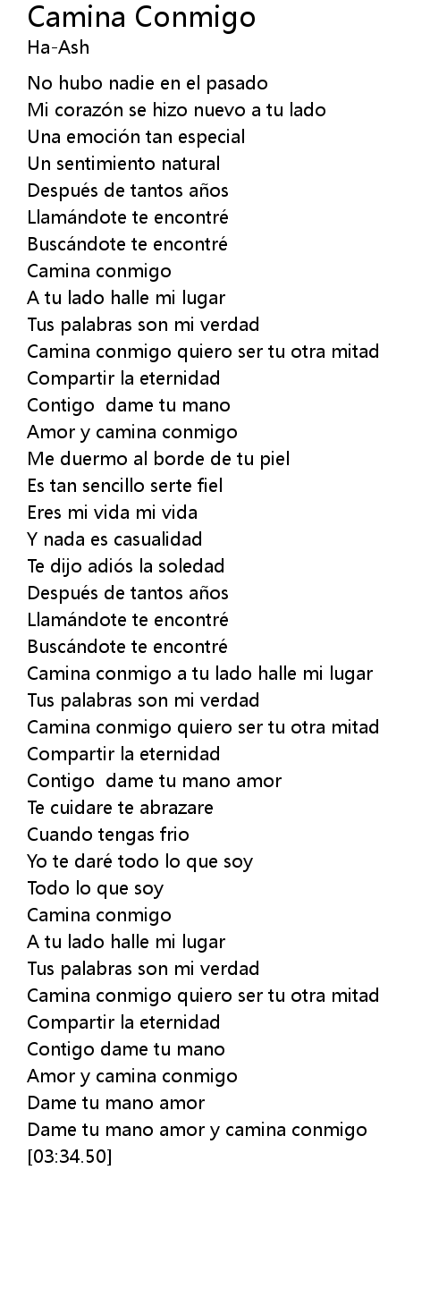 | [02:55.40] | Camina conmigo quiero ser tu otra mitad |