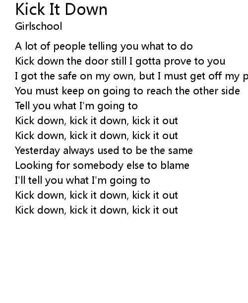 | Kick down, kick it down, kick it out |