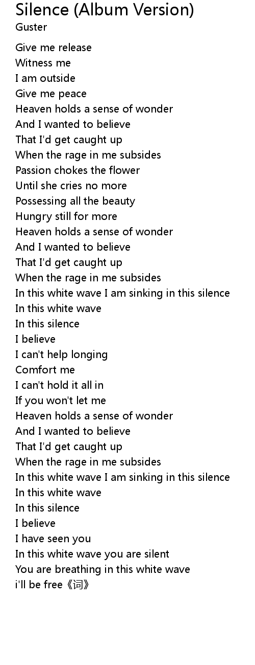 | [03:20.20] | In this white wave I am sinking in this silence |