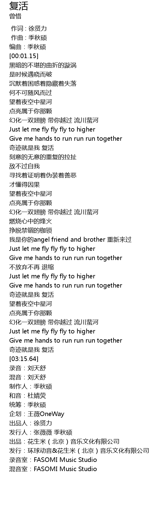 | [03:25.64] | 混音室:FASOMI Music Studio |