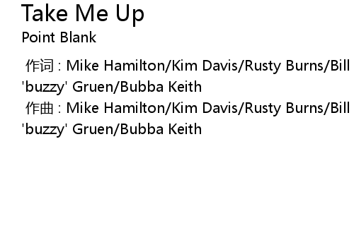 | [00:00.000] | 作词 : Mike Hamilton/Kim Davis/Rusty Burns/Bill Randolph/Peter 'buzzy' Gruen/Bubba Keith |
