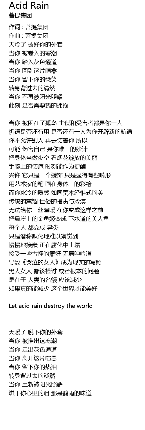 | 烘干你心里的泪 那是酸雨的味道 |