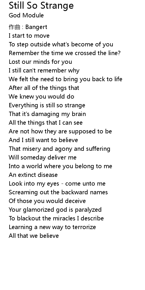 | Song | Still So Strange |