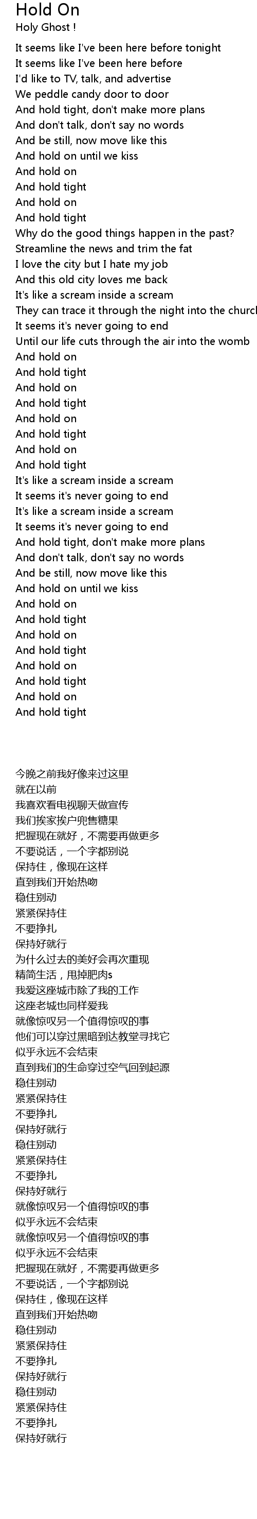 And hold tight, don't make more plans |
