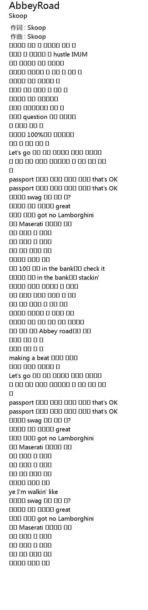 | [01:37.890] | 마트 맞은 편을 Abbey road처럼 걸어 |