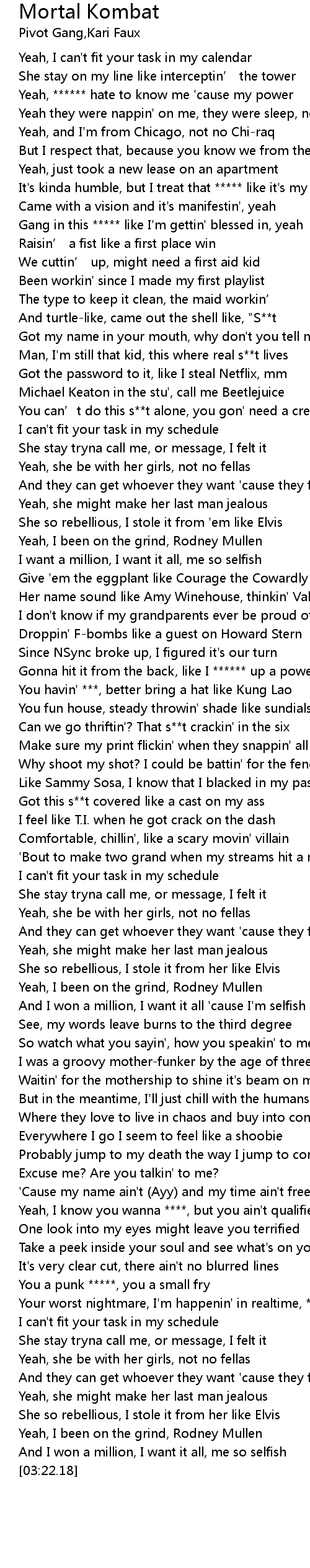 | [02:58.12] | Your worst nightmare, I'm happenin' in realtime, ***** |