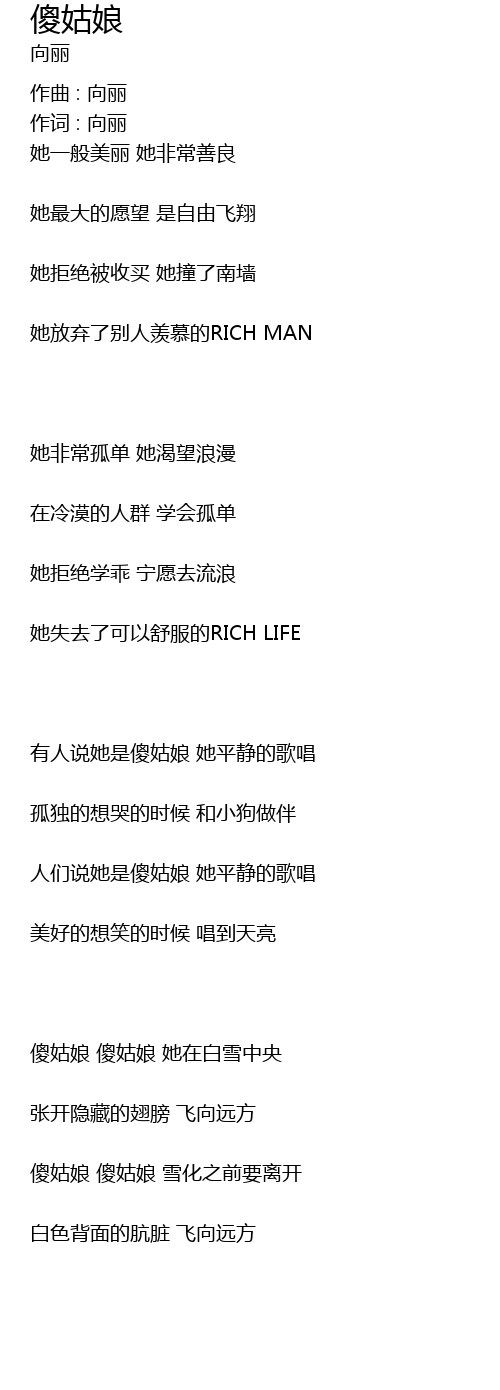 | 有人说她是傻姑娘 她平静的歌唱 | |