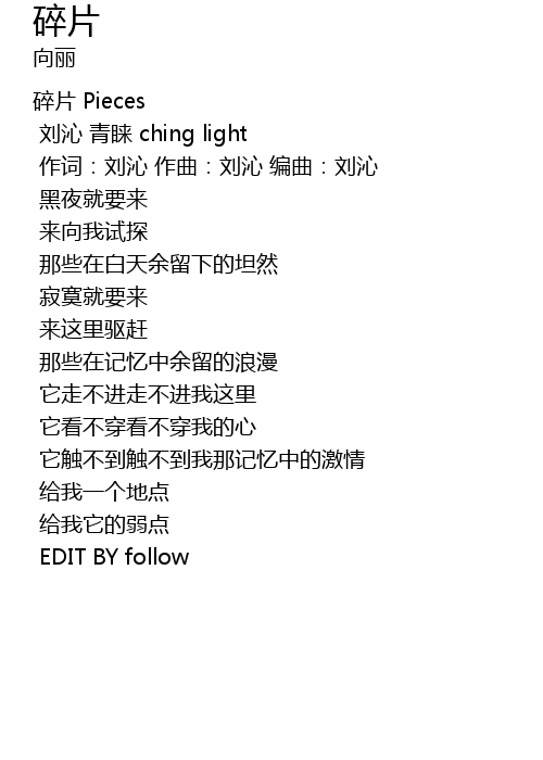 | 作词:刘沁 作曲:刘沁 编曲:刘沁 | |
