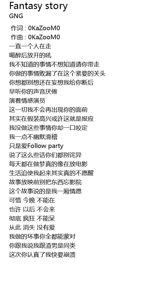 | [00:00.000] | 作词 : 0KaZooM0 |