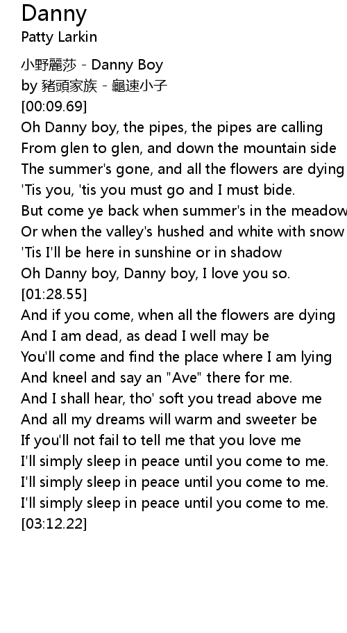 | [01:20.64] | Oh Danny boy, Danny boy, I love you so. |