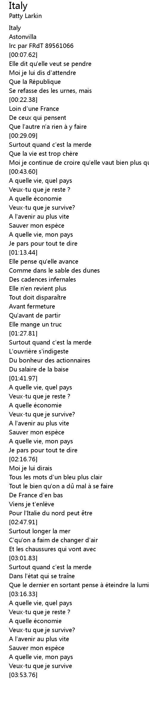 | [01:43.71] | A quelle vie, quel pays |